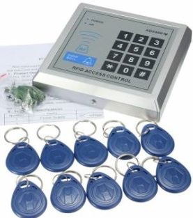 Ovilukonohjaus ja 10 kpl RFID-avainta.